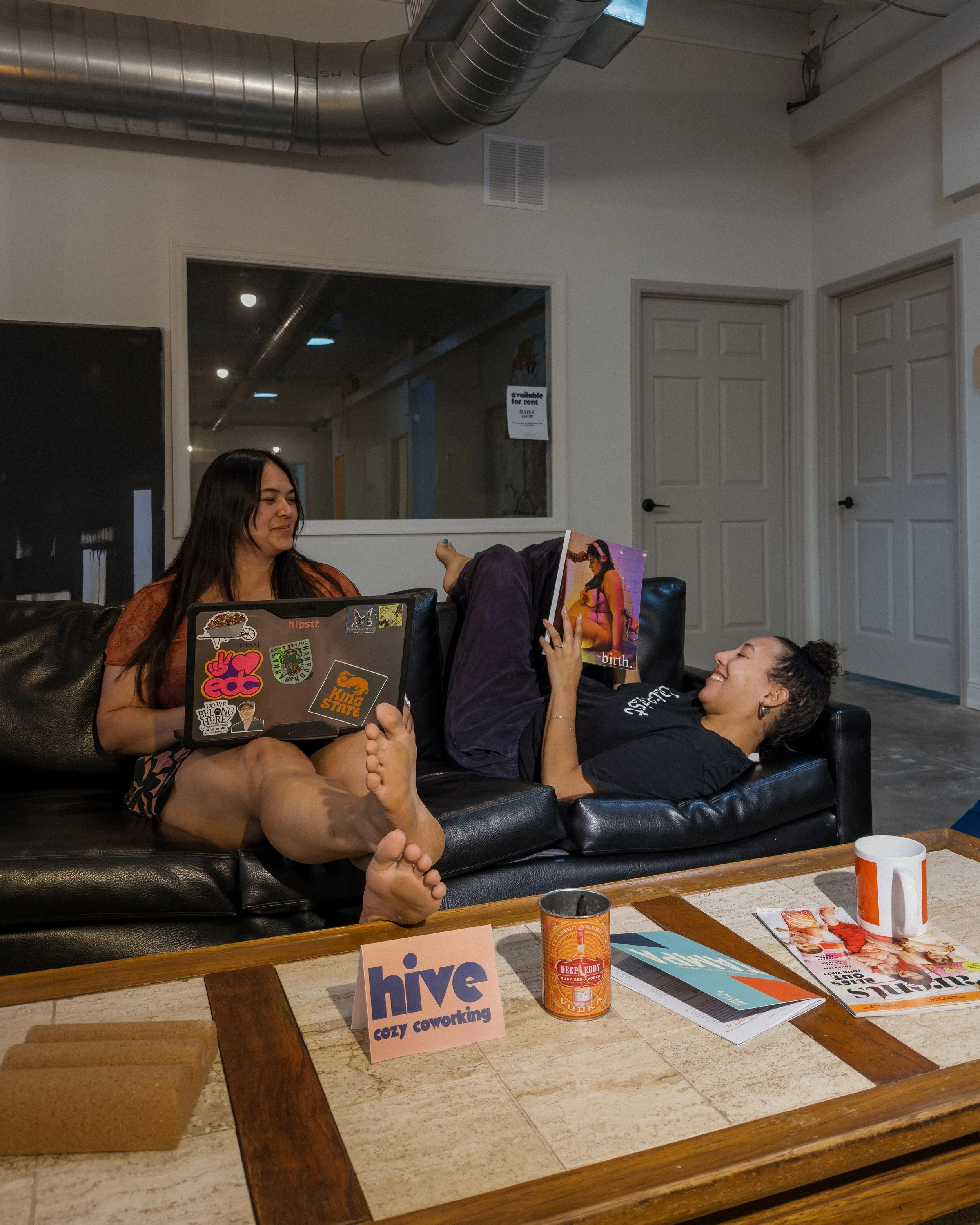 Stephanie (on the left) our visionary Founder, dreamed up Hive as more than just a coworking space—it’s a cozy, collective hub designed to inspire.
